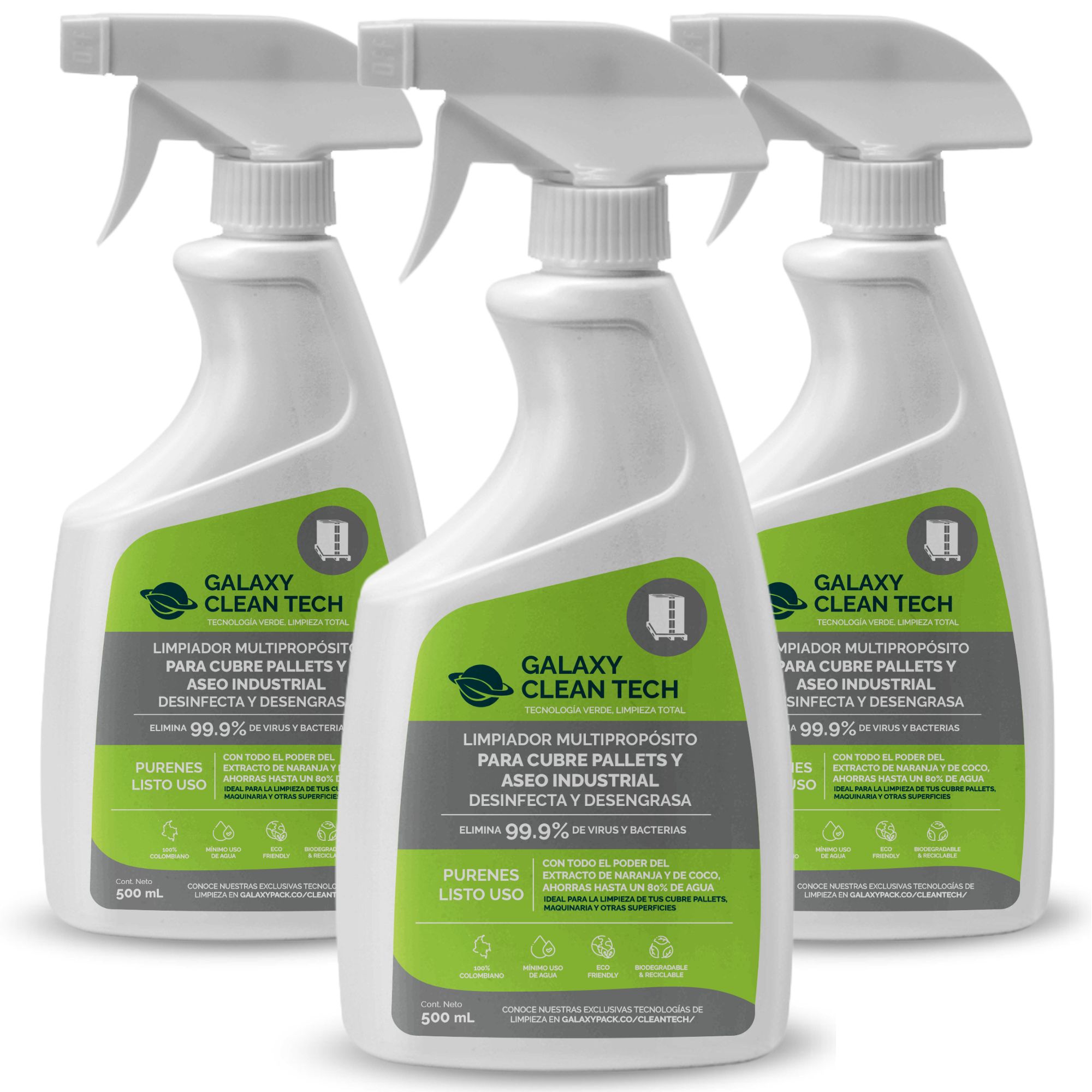 Recibe 3 unidades de 500 mL. Limpia y desinfecta superficies industriales de alto tráfico de forma eficiente. Diseñado para pisos, maquinaria, estibas, racks y cubre pallets, elimina grasa, polvo y suciedad pesada sin dañar materiales. Su fórmula con extractos de naranja y coco reduce hasta un 80% el consumo de agua, optimiza tiempos de limpieza y mejora la seguridad operativa en entornos industriales.
